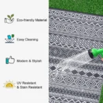 【Easy to Clean】 The plastic material used in this carpet makes it easy to clean and maintain. You can simply wipe away dirt, debris, and spills with a damp cloth or hose off the carpet to remove any stubborn stains. This hassle-free cleaning process ensures that the carpet stays fresh and vibrant, even after extended outdoor use.